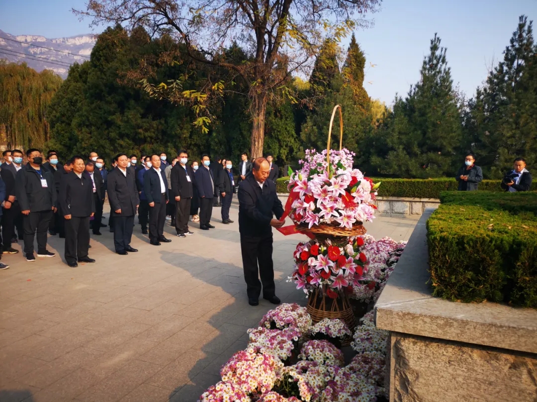 與會人員集體參觀焦裕祿紀(jì)念館并敬獻(xiàn)花籃