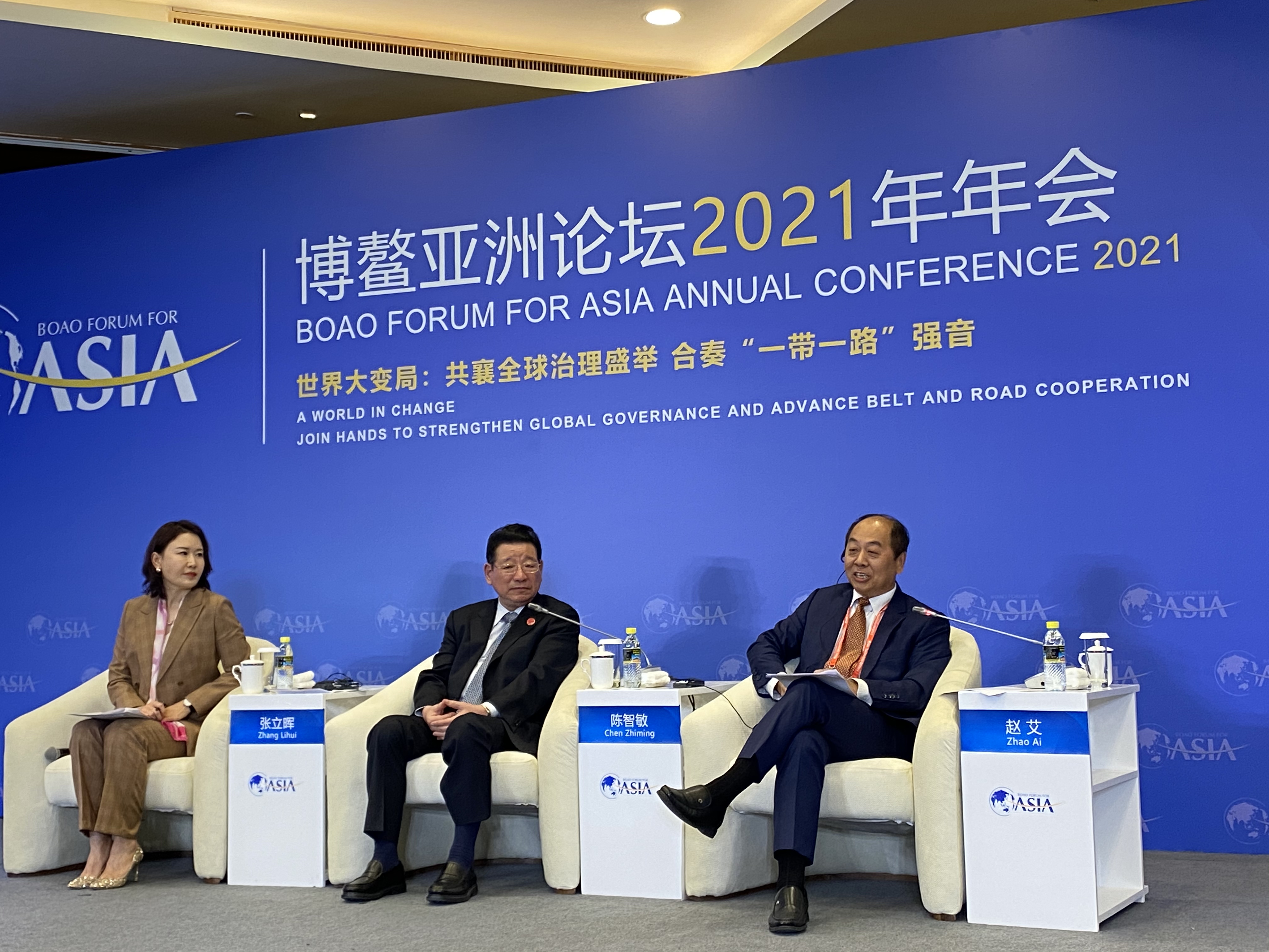 4月18日至21日,博鰲亞洲論壇2021年年會(huì)于海南博鰲舉行,國(guó)家主席習(xí)近平以視頻方式發(fā)表題為《同舟共濟(jì)克時(shí)艱,命運(yùn)與共創(chuàng)未來(lái)》的主旨演講,國(guó)家副主席王岐山出席開(kāi)幕式。我會(huì)會(huì)長(zhǎng)彭森、常務(wù)副會(huì)長(zhǎng)兼秘書(shū)長(zhǎng)趙艾應(yīng)邀出席論壇,并分別在“雙循環(huán)的中國(guó)新發(fā)展格局”、“打造‘信任經(jīng)濟(jì)’” 分論壇上發(fā)表演講。