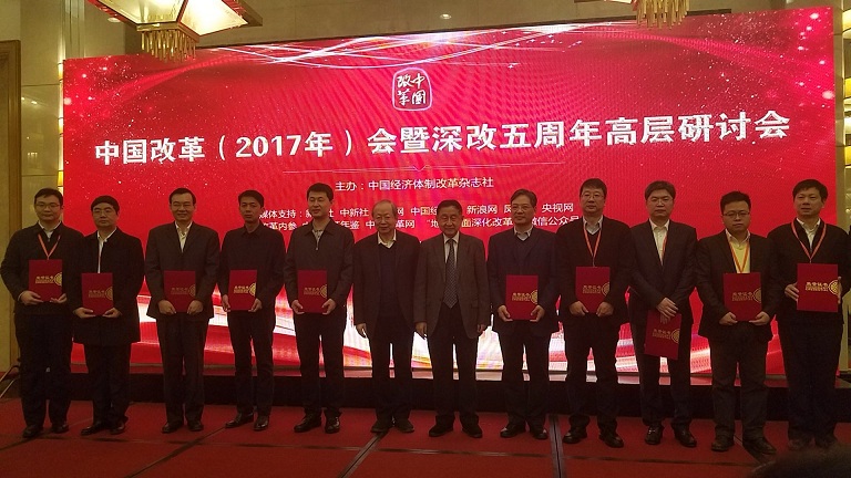2018年1月13日上午9時,由中國經(jīng)濟體制改革雜志社主辦的“貫徹黨的十九大會議精神 推進全面深化改革取得更大成功——中國改革(2017)年會暨深改五周年高層研討會”在北京西苑飯店隆重召開。研討會開幕式上,主辦單位揭曉了“2017中國改革年度案例單位”名單。