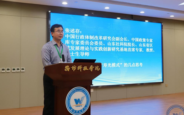 新時代鄉(xiāng)村振興與區(qū)域經(jīng)濟發(fā)展研究院執(zhí)行院長、經(jīng)濟管理學部主任、教授、博士生導師張友祥代表“壽光模式”研究課題組從“壽光模式”的內(nèi)涵和特征、形成機制、實踐價值等方面作了研究成果匯報。