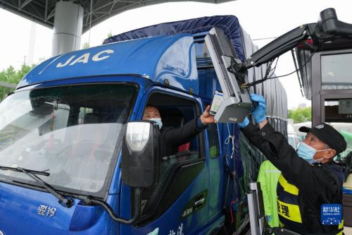 4月13日,在合肥百大周谷堆大興農(nóng)產(chǎn)品物流園,司機(jī)在智能化門禁系統(tǒng)上掃碼進(jìn)入。該園建立集測溫、核驗安康碼、數(shù)據(jù)收集等功能的智能化門禁系統(tǒng),進(jìn)場駕乘人員不用下車即可快速核驗,實現(xiàn)防疫測溫智能化、人車追溯數(shù)據(jù)化。新華社記者 杜宇 攝
