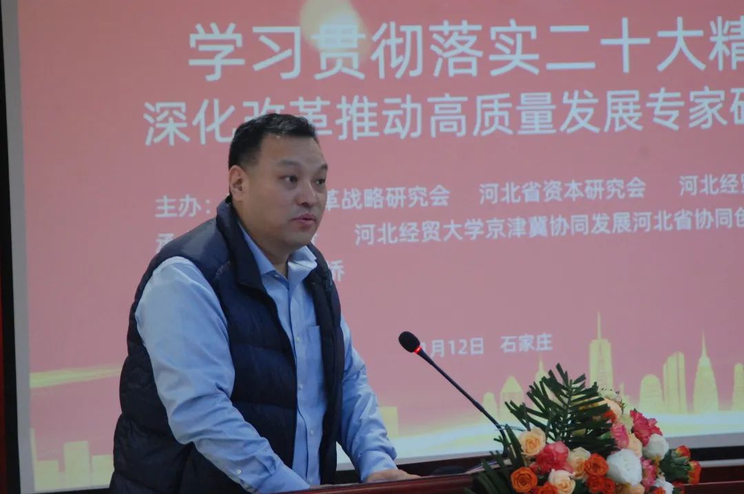 為深入學(xué)習(xí)貫徹黨的二十大精神,深化改革開放,加快構(gòu)建新發(fā)展格局,推動我省經(jīng)濟高質(zhì)量發(fā)展,1月12日,由河北省改革戰(zhàn)略研究會、河北省資本研究會、河北經(jīng)貿(mào)大學(xué)共同主辦,邯鄲銀行、河北經(jīng)貿(mào)大學(xué)京津冀協(xié)同發(fā)展河北省協(xié)同創(chuàng)新中心承辦,經(jīng)貿(mào)橋協(xié)助承辦的“學(xué)習(xí)貫徹落實二十大精神,深化改革推動高質(zhì)量發(fā)展專家研討會”在石家莊召開。