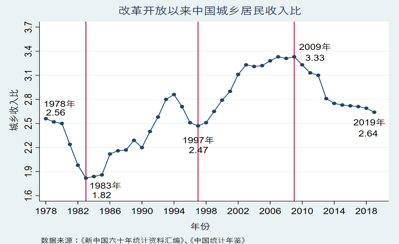 圖5:改革開(kāi)放以來(lái)中國(guó)城鄉(xiāng)居民收入比