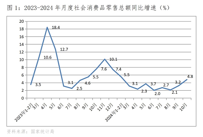 (一)零售增速繼續(xù)回升。10月份,社會(huì)消費(fèi)品零售總額同比增長(zhǎng)4.8%,比9月份增長(zhǎng)3.2%回升了1.6個(gè)百分點(diǎn),9月份比8月份增長(zhǎng)2.1%回升了1.1個(gè)百分點(diǎn)。社會(huì)消費(fèi)品零售總額增速的持續(xù)回升,既反映了政策措施取得了積極效果,也說(shuō)明消費(fèi)者對(duì)有效政策措施的響應(yīng)較為積極。隨著消費(fèi)品以舊換新政策措施力度的不斷加大,家用電器和音像器材以及汽車零售額增長(zhǎng)加快或由負(fù)轉(zhuǎn)正,10月份限額以上企業(yè)家用電器和音像器材零售額增長(zhǎng)39.2%,比9月份加快17.7個(gè)百分點(diǎn),9月份比8月份加快17.1個(gè)百分點(diǎn);汽車零售額增長(zhǎng)3.7%,比9月份加快3.3個(gè)百分點(diǎn),9月份為增長(zhǎng)0.4%,8月份為下降7.3%??梢?jiàn),實(shí)施有效的政策措施對(duì)擴(kuò)大消費(fèi)的效果是明顯的積極的。